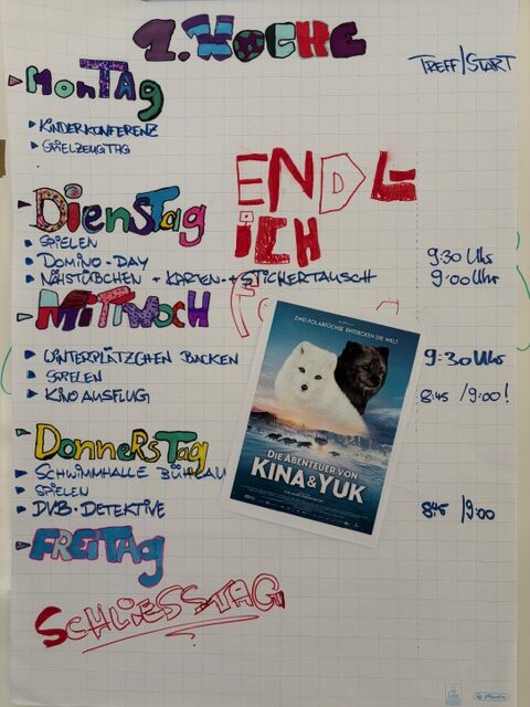 hier findet ihr das aktuelle Ferienprogramm. Bitte beachtet, dass wir am Mittwoch und Donnerstag ausschließlich in der Turnhalle sein werden. Der Früh- und der Spätdienst, sowie die Rezeption und die Garderobe werden ebenfalls in der Turnhalle sein.
